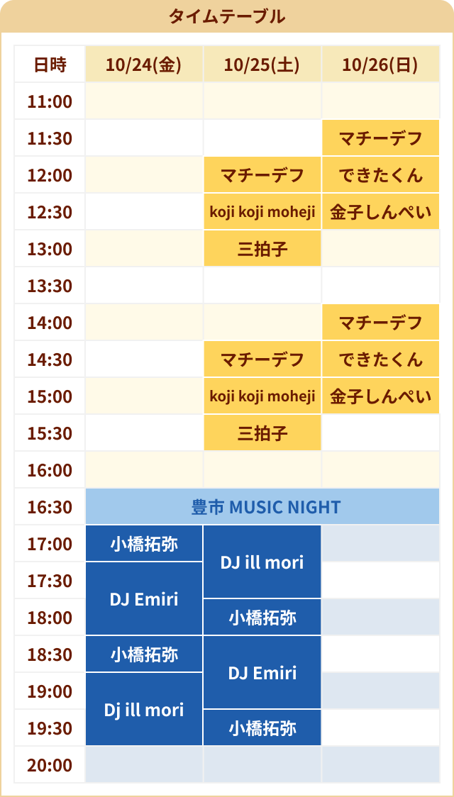 ※当日の実施状況により、開催内容や時間は変更になる場合がございます。