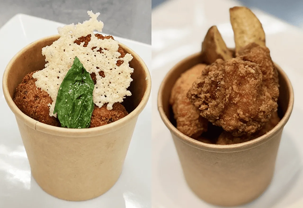 ・鹿肉でしか味わえない旨味を閉じ込めたボロネーゼと治助イモにチーズを合わせたクロケット。衣にはハーブとチーズを使用しています。
